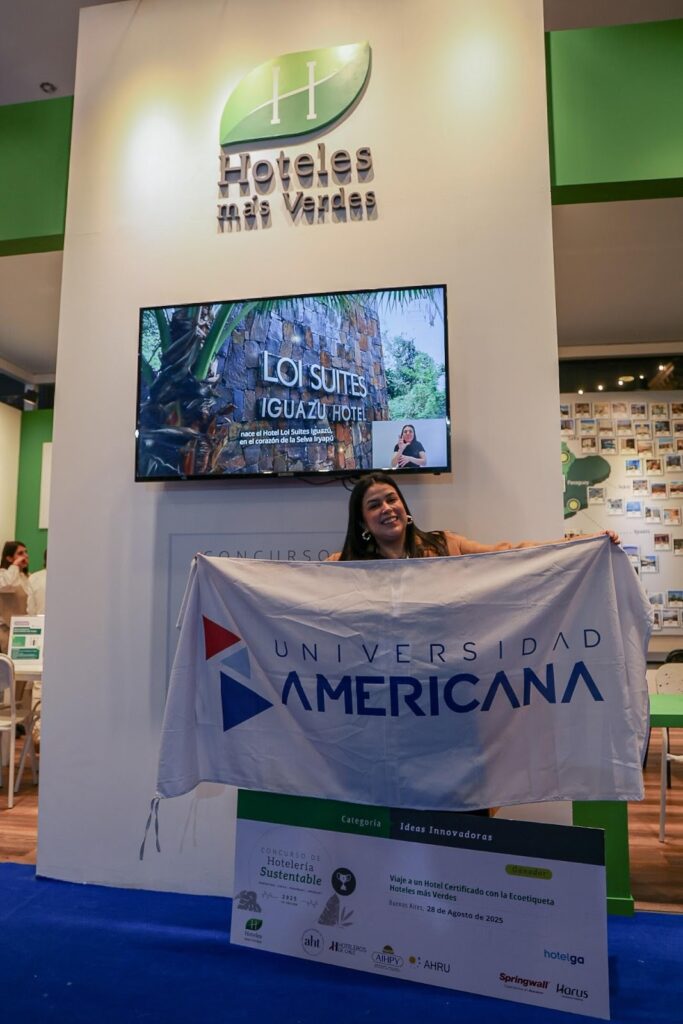 La Universidad Americana celebra con orgullo un nuevo logro académico: Nanis Mitjans, estudiante de la carrera de Licenciatura en Gestión de Turismo y Hotelería en la modalidad virtual Educación a Distancia, obtuvo el primer puesto en la categoría Ideas Innovadoras del prestigioso Concurso de Hotelería Sustentable – Hoteles más Verdes 2025, por tercer año consecutivo.